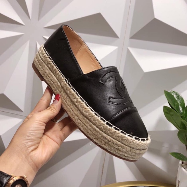 Giầy silipon chanel chất da 1 màu đen duy nhấ độn 3p đế cói kết cực kì chắc chắn ai lâdy báo e sz số, số lượng hàng ít .