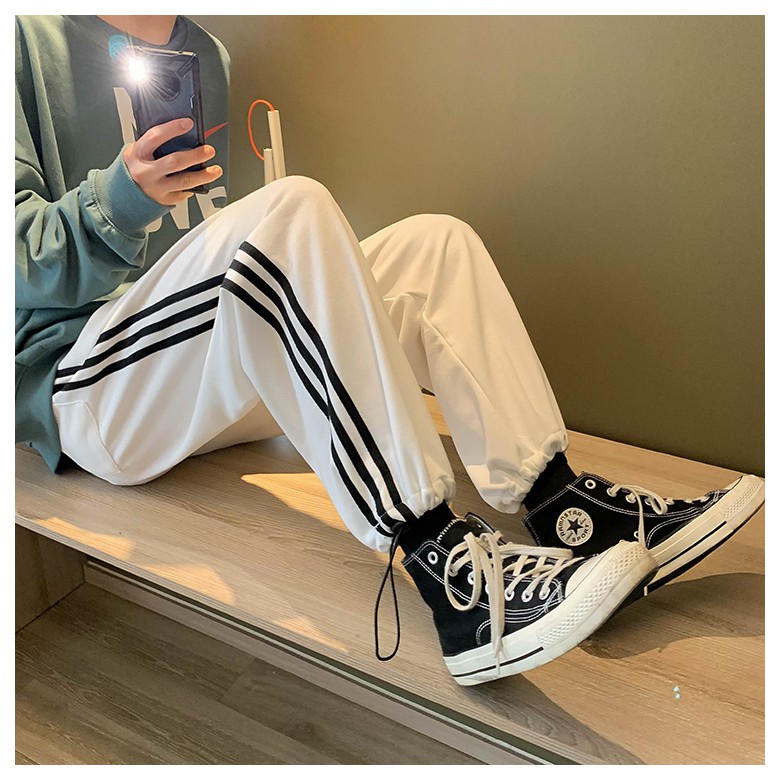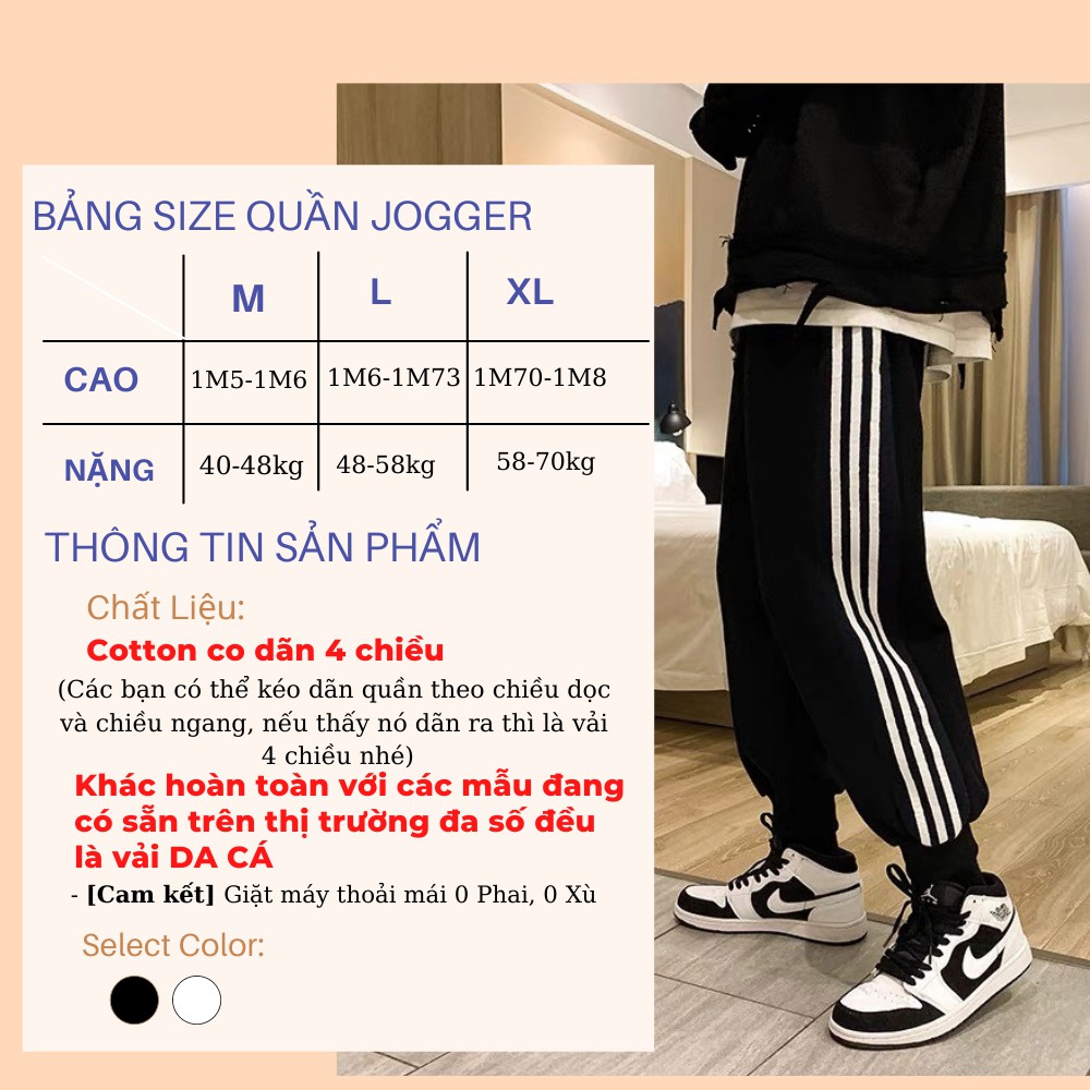 Quần Jogger Thể Thao Đen 1 Sọc Trắng Co Giãn Mát Mẻ