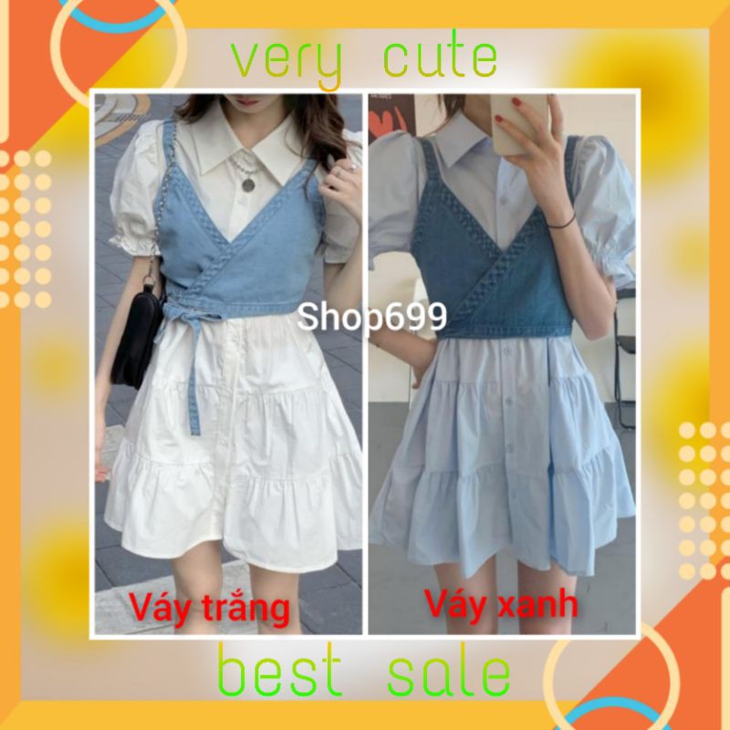 (CÓ SẴN)SET VÁY 2 CHI TIẾT TRẮNG XANH CỰC XINH free ship